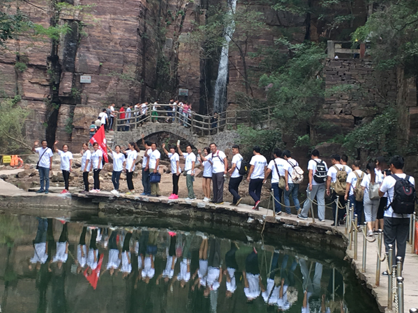 兩天的時(shí)間全體隊(duì)員不怕苦,不怕累的進(jìn)行了“高空斷橋”、“七巧板”“定向?qū)殹?、“同起同坐”以及“畢業(yè)墻”五大項(xiàng)活動(dòng),每項(xiàng)活動(dòng)都有著自己的特色,也分別刻畫著不同的寓意來激勵(lì)著我們,使我們?cè)诓粩嗟耐黄谱约旱耐瑫r(shí)看到團(tuán)隊(duì)協(xié)作的重要性。